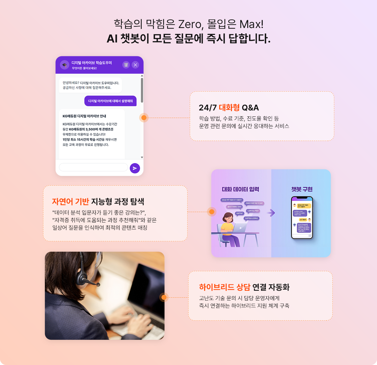 이후의 모든 지원 절차는 KG에듀원이 대신해 진행하므로 편리하게 학습 하실 수 있습니다.