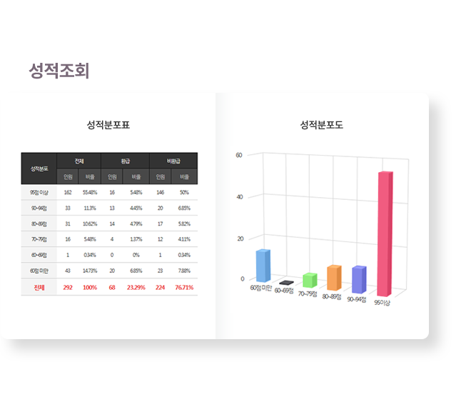 교육비, 성적분포도, 접속인원 등 여러가지 결과를
