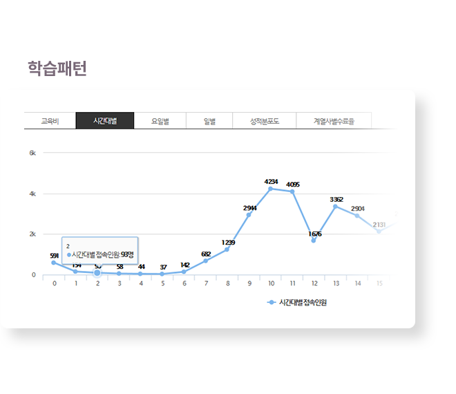 전체, 개별 학습자들의 학습패턴과 교육성과를 파악합니다.