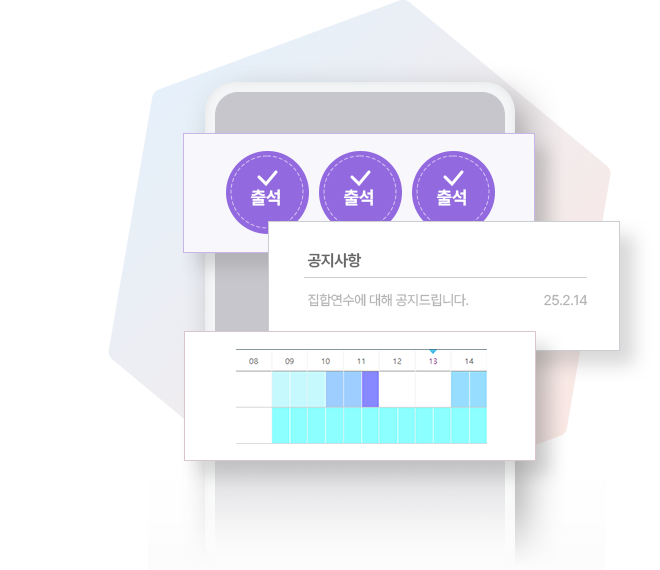집합연수 안내, 회의실 예약 등 다양한 시스템 연동이 가능합니다.